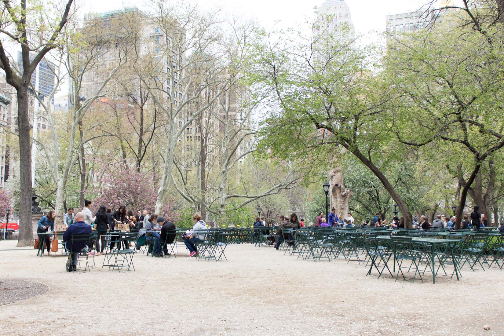 Madison Square Park est un « petit » parc de 2,5 hectares qui est situé dans le Flatiron District. Piqure de rappel, lors de notre séjour à New York, nous étions en plein printemps. Ce qui nous a permis de découvrir le parc au summum de la floraison. Les fleurs des arbres commençaient à tomber au sol et les tulipes rendaient le parc coloré, c’était magnifique à voir.