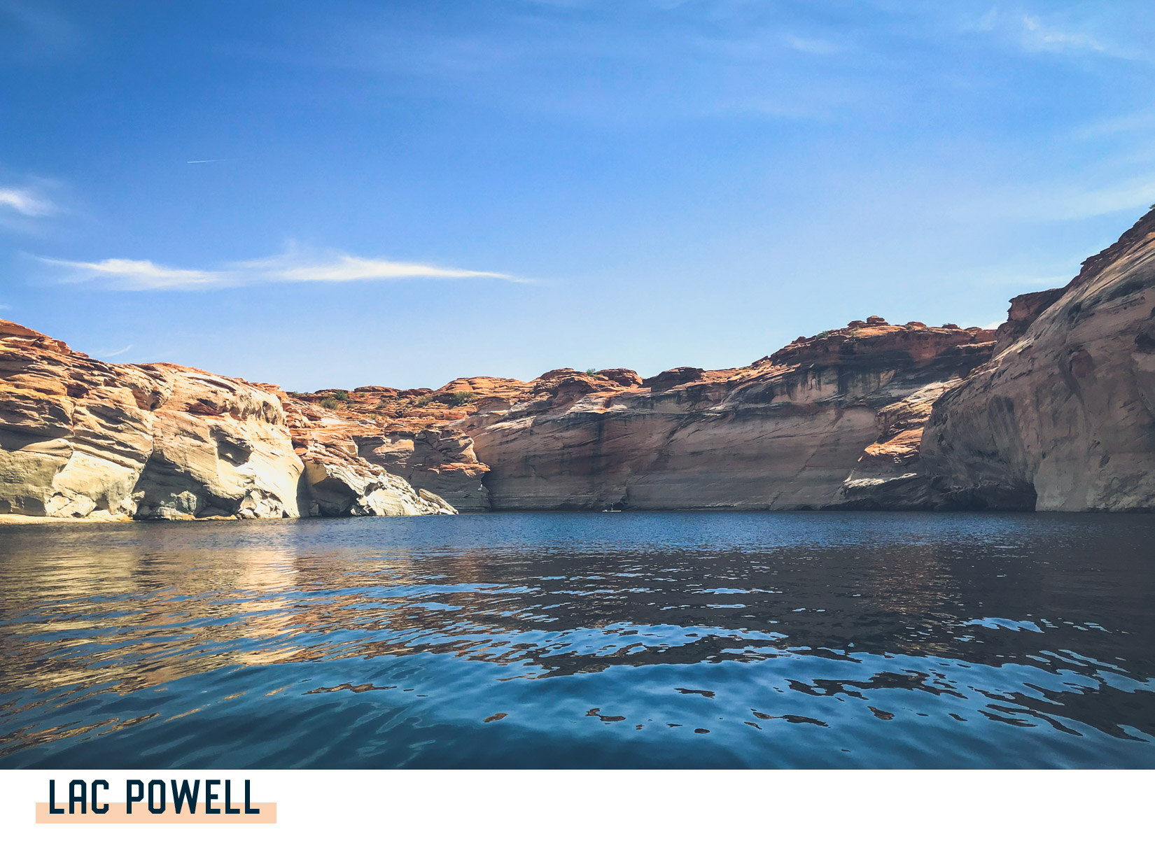 Ce lac situé dans le Glen Canyon National Recreation Area a la particularité d’être un lac artificiel. Avec ces 300 km de long, il est le plus grand des États-Unis. Il est tellement grand, qu’il s’étend sur deux états : l’Arizona et l’Utah. Son eau est très claire et il peut y avoir jusqu’à 150 m de profondeur. Plutôt impressionnant !